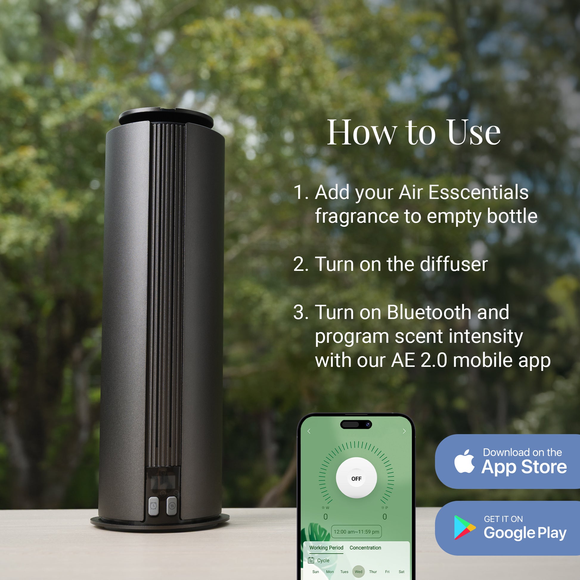The AE Tower 1000 is a modern, powerful aroma diffuser with Bluetooth Control. This diffuser comes with an empty 100mL bottle.