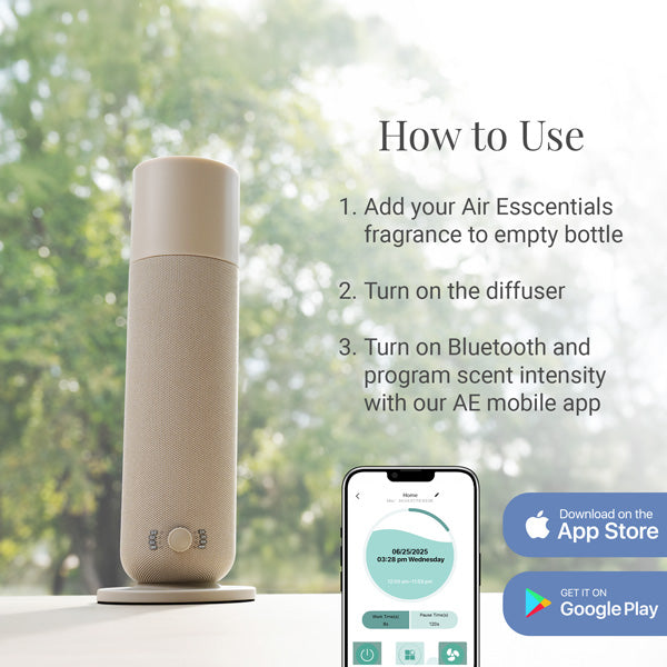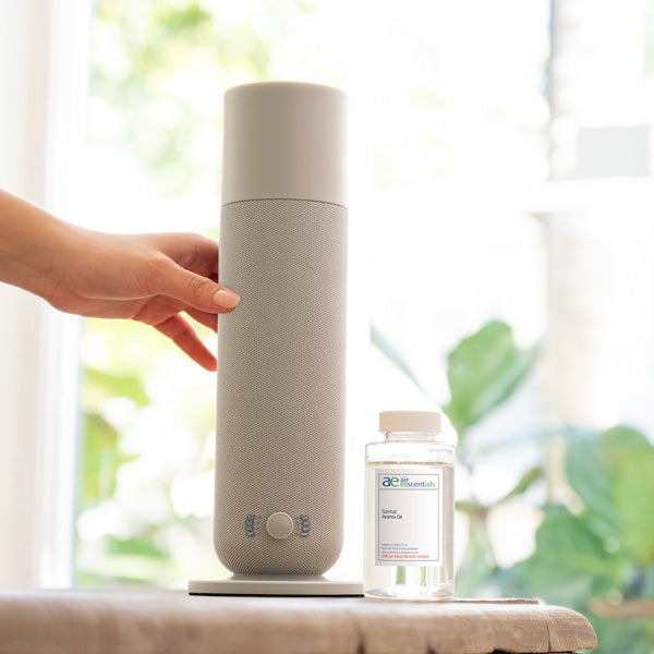 The AE800 Tower is a modern, powerful aroma diffuser with Bluetooth Control. This diffuser comes with an empty 120mL bottle.