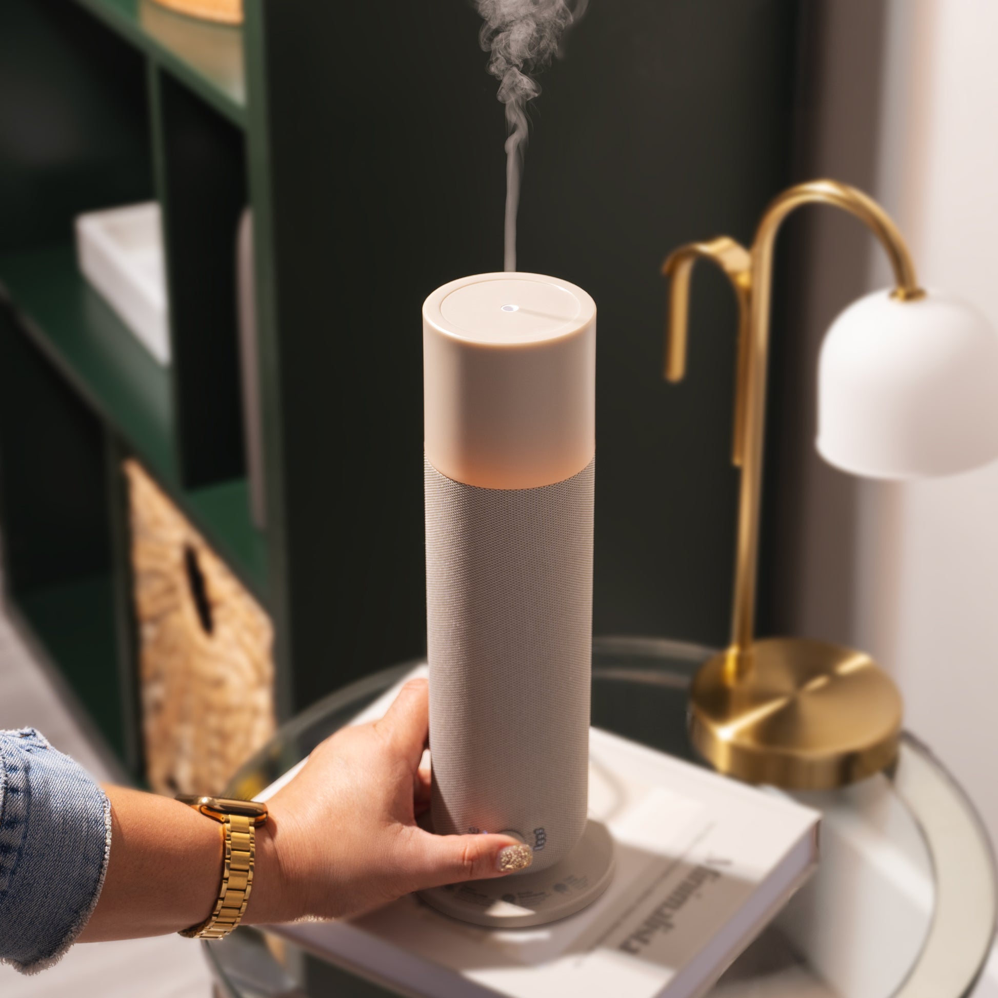 The AE800 Tower is a modern, powerful aroma diffuser with Bluetooth Control. This package includes a 120mL bottle of your fragrance of choice.
