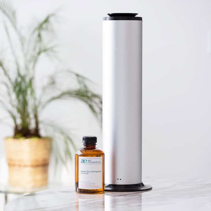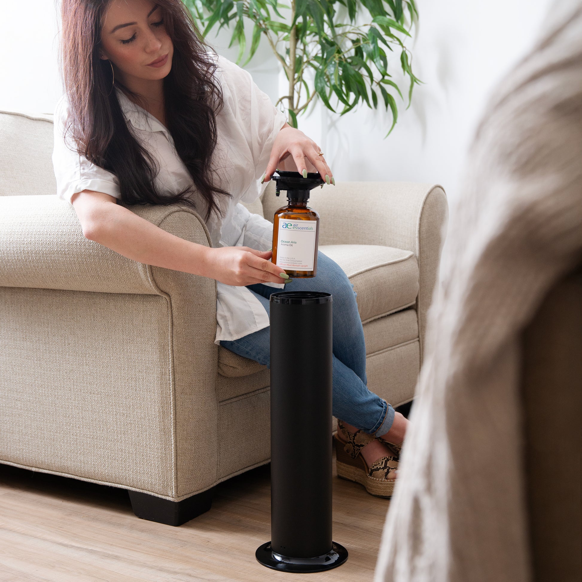 The AE Tower 2000 is a modern, powerful aroma diffuser with Bluetooth Control. This package includes a 550mL bottle of your fragrance of choice.