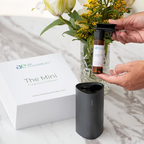 The Mini is a powerful fragrance diffuser which scents 300 square feet. This diffuser comes with an empty 30mL bottle.