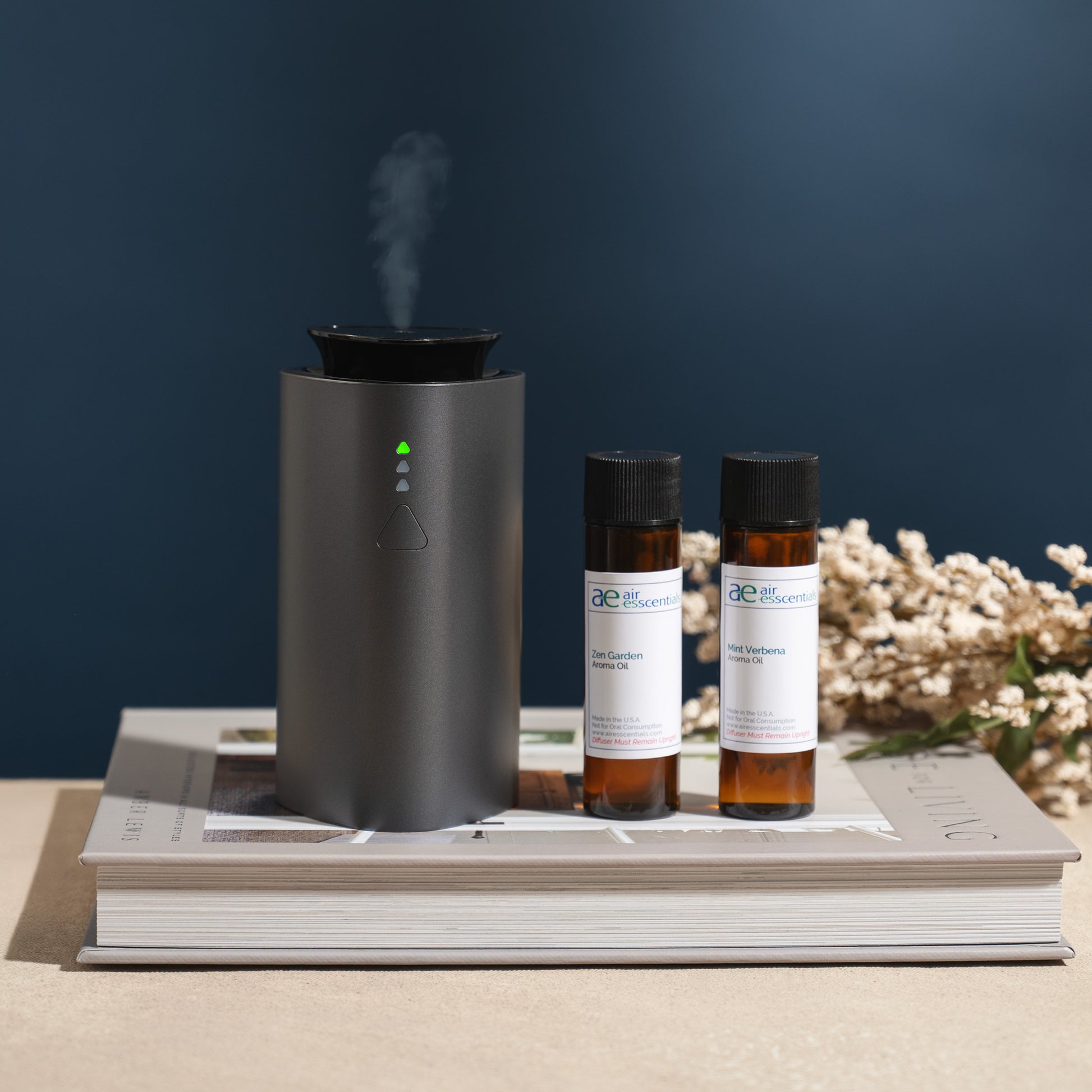 The Mini Gift Set includes the Mini diffuser and two 30mL bottles of your fragrances of choice.