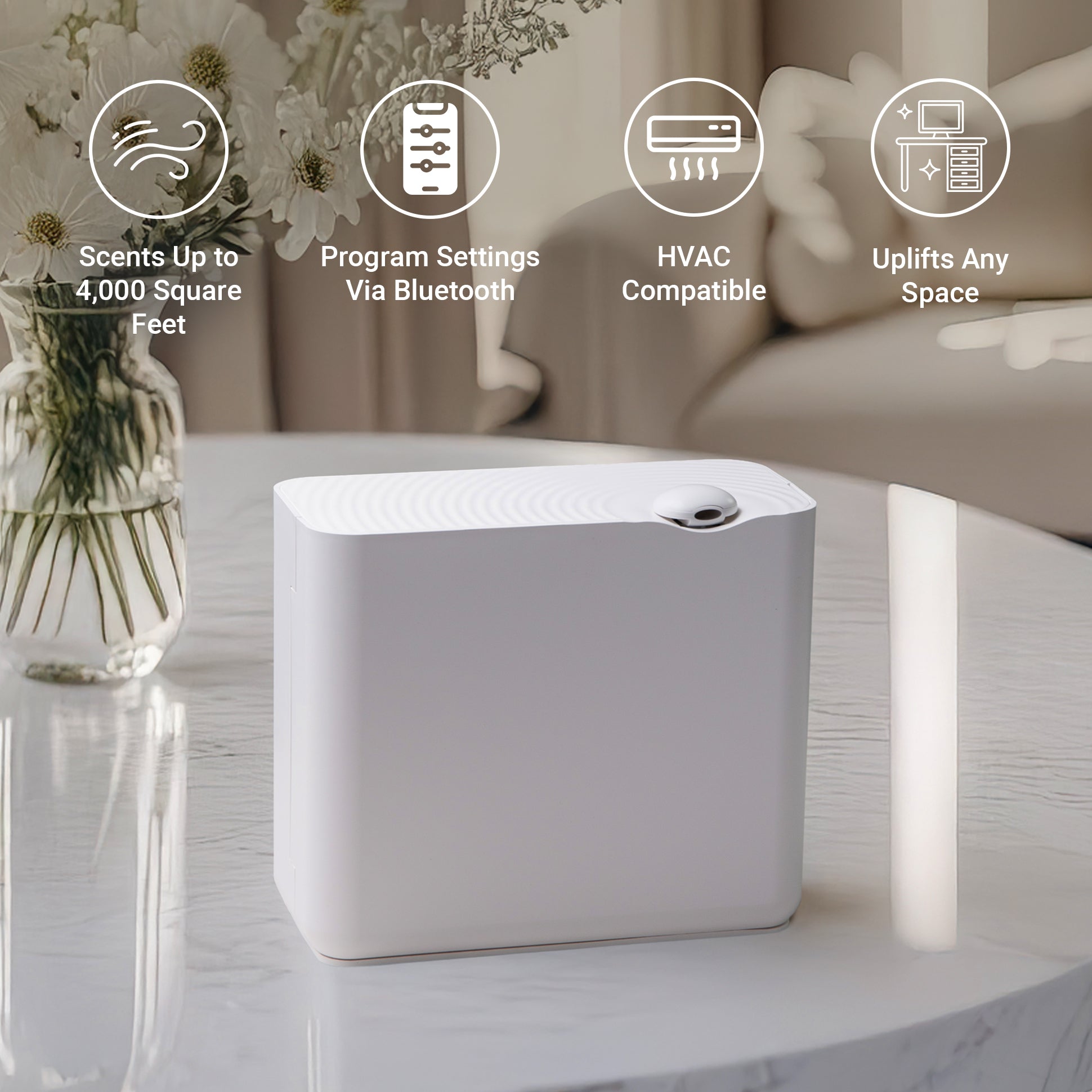 The Radiant provides maximum programmability and location flexibility with minimal service. This diffuser includes an empty 800mL fragrance bottle.